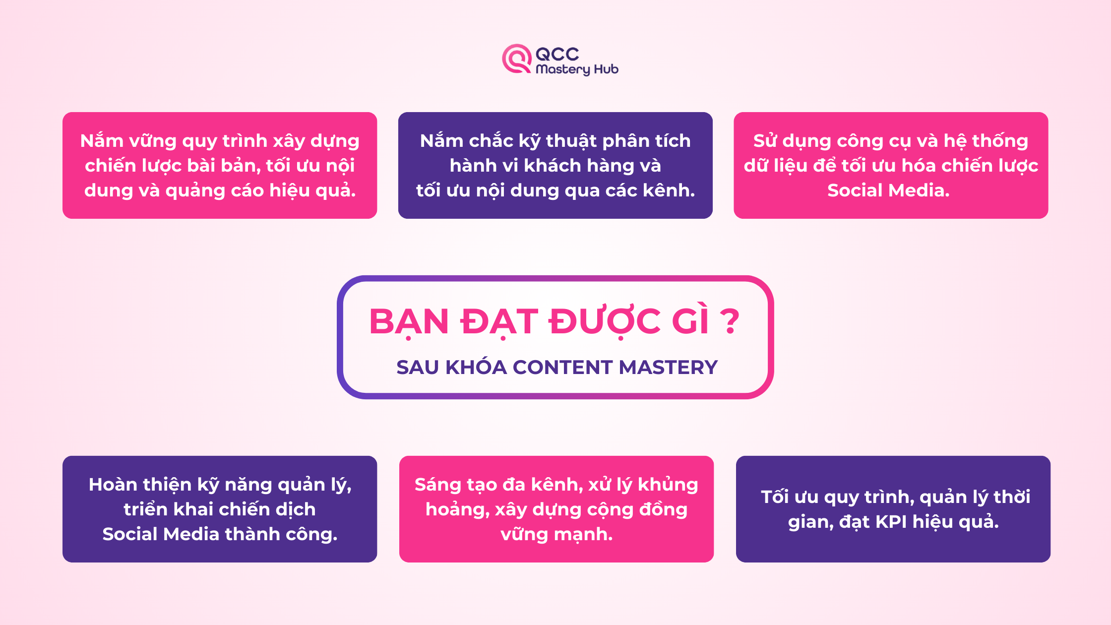 Khóa học Social Media Mastery chính thức ra mắt tại QCC Mastery Hub - giải pháp toàn diện giúp các Marketers nâng cao chuyên môn và chinh phục các chiến lược Social Media dài hạn. Với lộ trình 10 buổi chuyên sâu, bạn sẽ được học hỏi trực tiếp từ chuyên gia có hơn 8 năm kinh nghiệm thực chiến, nắm vững kiến thức và kỹ năng cần thiết để thành công trong lĩnh vực Social Media đầy cạnh tranh.